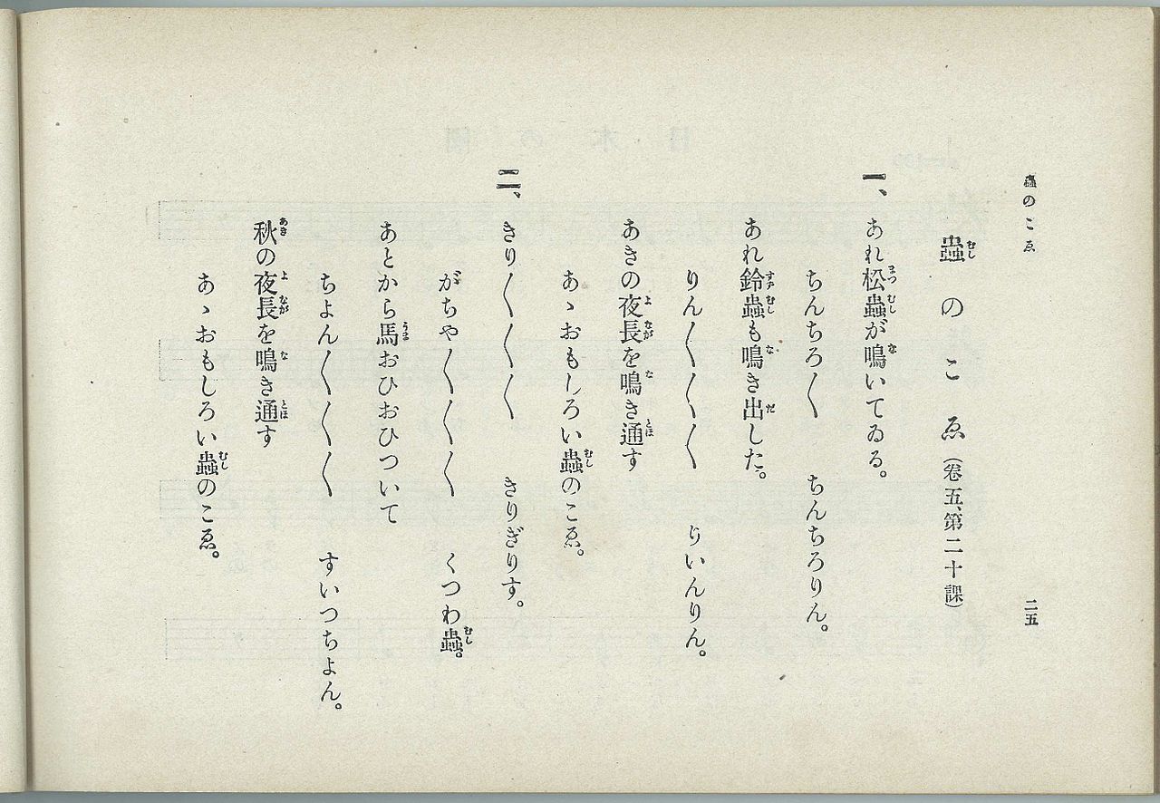 « 蟲のこえ » est une ancienne « 唱歌 » (chant scolaire) — elle a été publiée en 1910 dans le recueil 尋常小学読本唱歌 du ministère de l’éducation.